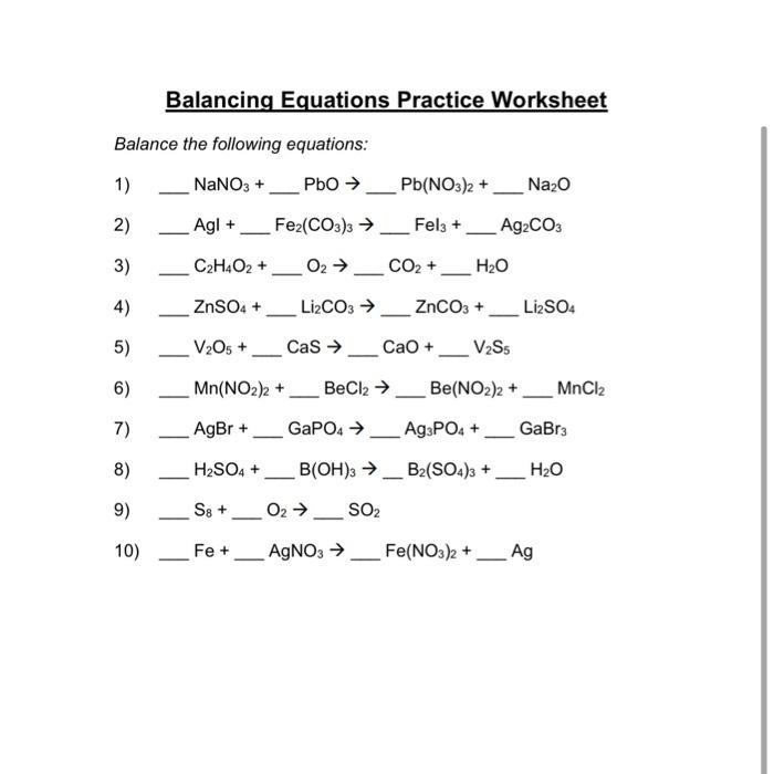 Balancing chemical equations practice worksheet answers.
