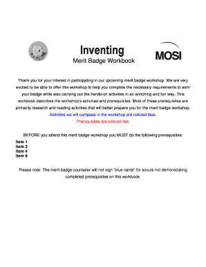 Inventing Merit Badge Workbook This workbook can help you but you still need to read the merit badge pamphlet. The work space provided for each requirement ...