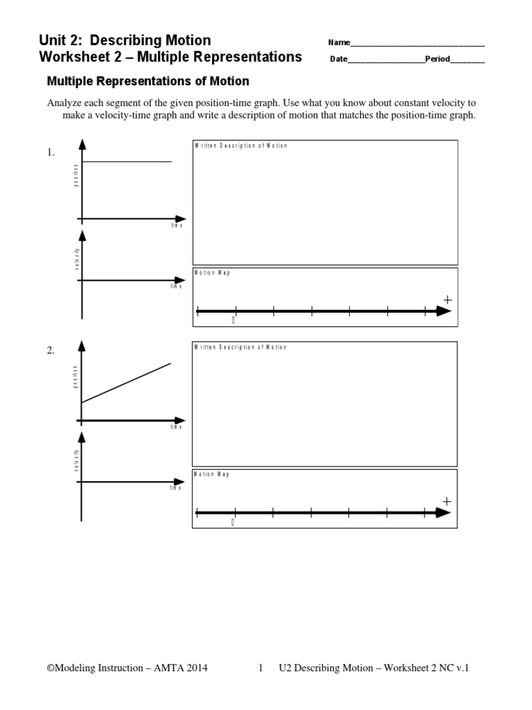 Describing motion with position time graphs worksheet answers. 6. Consider the position-time graphs for objects A, B, C and D. On the ticker tapes to the right of the graphs, construct a dot diagram for each object. Since the objects could be moving right or left, put an arrow on each ticker tape to indicate the direction of motion. 7. Consider the velocity-time graphs for objects A, B, C and D. Describing motion with graphs involves representing how a quantity such as the object's position can change with respe the time. The key to using position-time graphs is knowing that the slope of a position-time graph reveals information about the object's velocity. Motion can be described using words, diagrams, numerical information, equations, and graphs. Describing motion with graphs involves representing how a quantity such as the object's position can change with respect to the time. The key to using position-time graphs is knowing that the slope of a position-time graph reveals Motion can be described using words, diagrams, numerical information, equations, and graphs. Describing motion with graphs involves representing how a quantity such as the object's position can change with respect to the time. The key to using position-time graphs is knowing that the slope of a position-time graph reveals