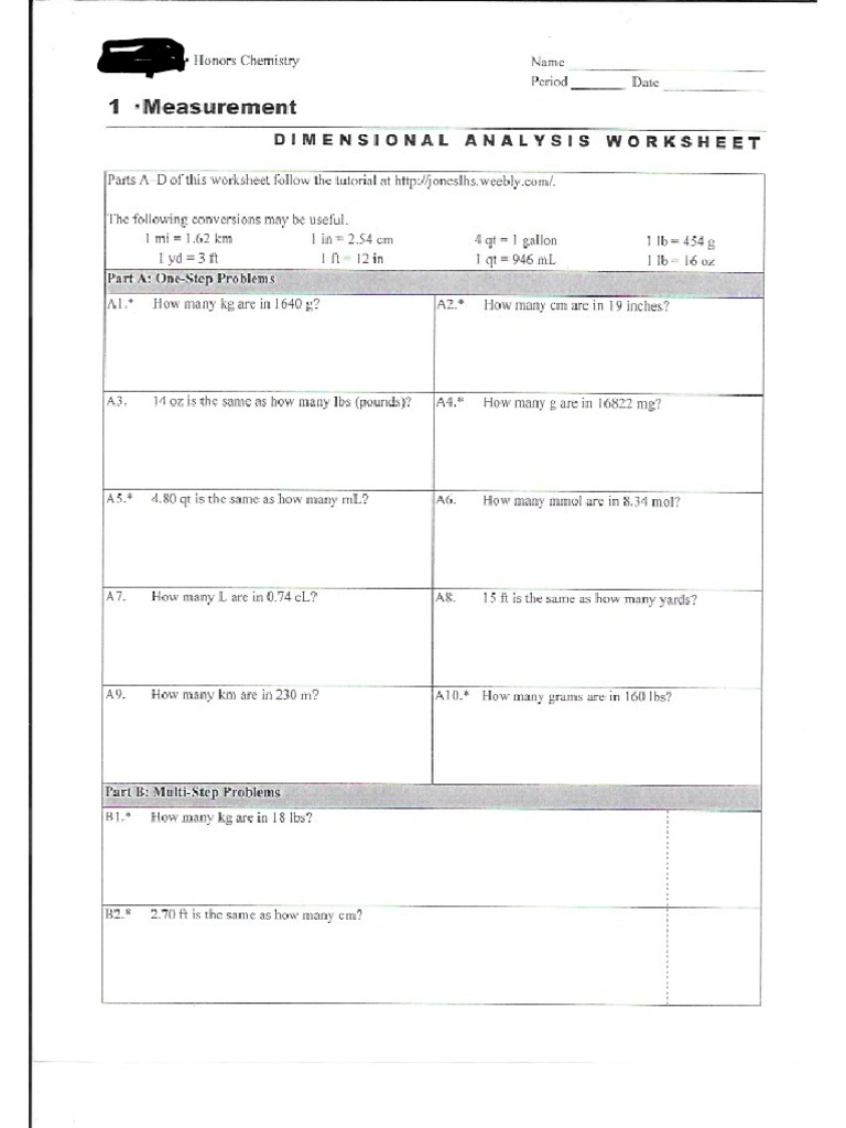 Jan 26, 2022 · Dimensional analysis worksheet 2 with answers pdf. 1 mile 5 280 ft 1 inch 2 54 cm 3 feet 1 yard 454 g 11b 946 1 qt 4 1 gal 1 5 400 inches to. Use the factor label method or dimensional analysis to convert between the following units. Determine which unit you want the answer expressed in.