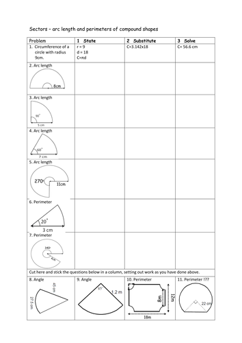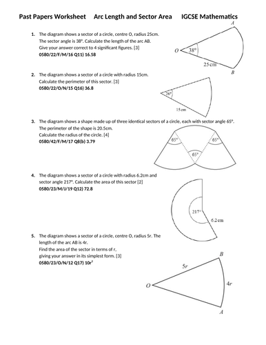 Geometry worksheet arc length sector area segment area answers