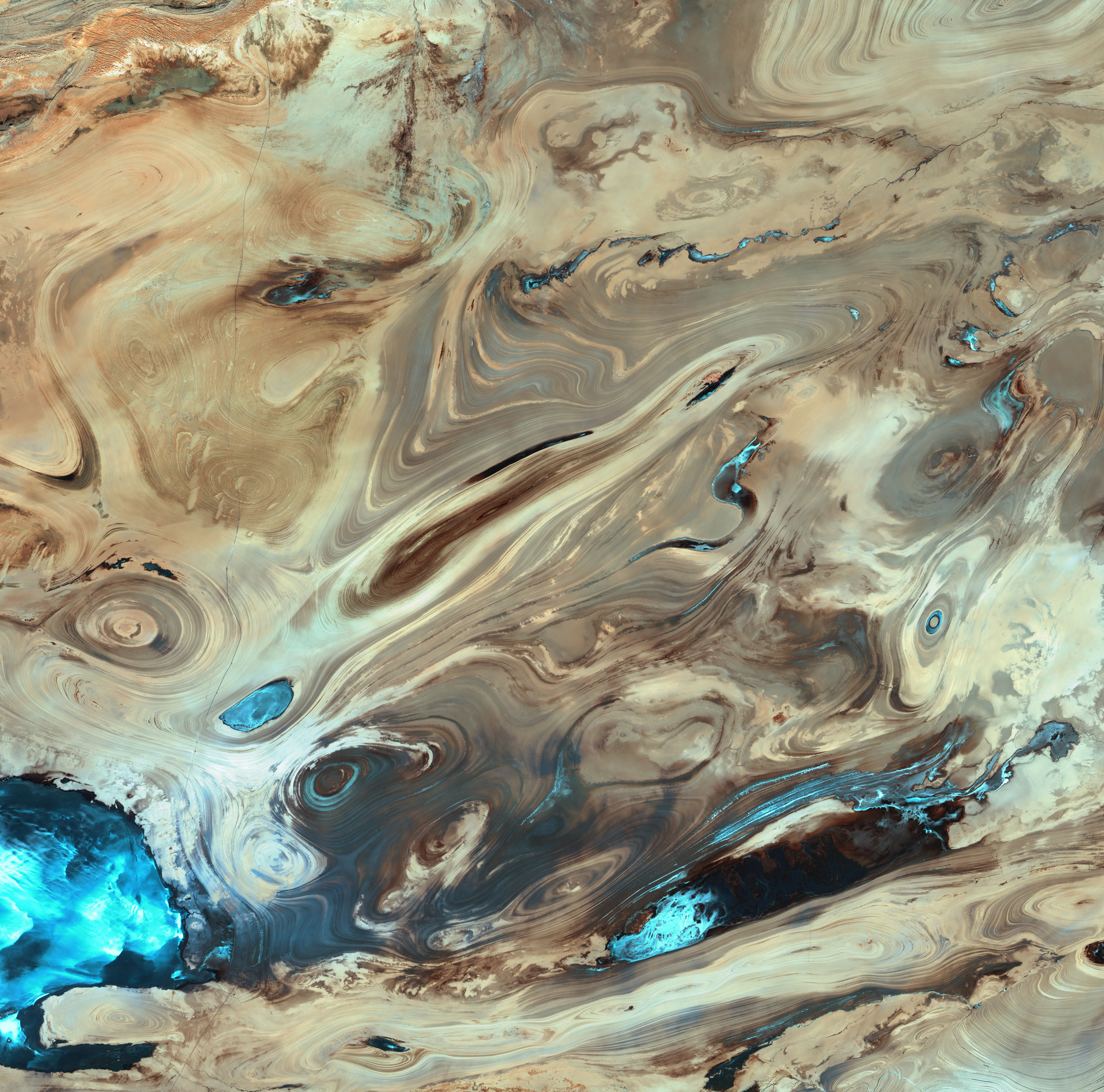 The Dasht-e Kevir, or Great Salt Desert, is the largest desert in Iran. It is a primarily uninhabited wasteland, composed of mud and salt marshes covered with crusts of salt that protect the meager moisture from completely evaporating.