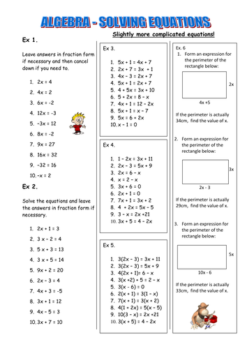 On these printable activities, students will review solving algebraic equations with only one step. Common Core Standard 6.EE.B.7. Solving for Variables Addition & Subtraction Only. Solving One Step Equations: Basic ... This worksheet has a two model problems and 12 for students to solve. This basic level worksheet does not have decimals. 5th ... Can someone say where the fault is in my solution? I know for sure the answer I found at the end is not correct, they search a numeric answer. https://imgur.com/a/pRrDyr9 Share with the class that today they will learn a third method for solving systems of equations. Review with the students the basics of solving equations: 1) combining like terms and 2) performing the same operation on both sides of the equation … Multi-step equation worksheets. These worksheets require students to perform multiple steps to solve the equations. Use the knowledge gained in solving one-step and two-step equations to solve these multi-step equations. A number of application oriented problems based on geometrical shapes are also included here. Equation word problems worksheets
