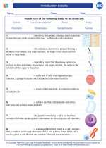 The worksheets recommended for students of grade 4 through grade 8 feature labeled animal and plant cell structure charts and cross-section charts, cell vocabulary with descriptions and functions and exercises like identify and label the parts of the animal and plant cells, color the cell organelles, match the part to its description, fill in ...