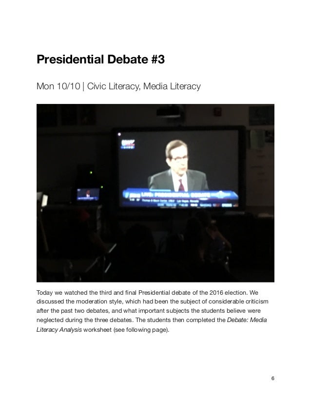 FREE! Presidential Debate Analysis Chart(Civics) Your secondary students can use this easy chart when watching any Presidential debate. Students will take notes on the ideologies of both the Republican and Democratic candidates and then complete wrap-up questions and a venn diagram comparing the different candidates and parties. HOW TO WATCH A PRESIDENTIAL DEBATE: Viewer’s Worksheet. Complete this worksheet while you watch and analyze the 2012 presidential or vice-presidential debates. ★★★ BARACK OBAMA ★★★ ★★★ MITT ROMNEY ★★★ SETTING: Examples of how colors, camera positions, view fram- Conducting Post-Debate Analysis with Students. Sharing our debate handouts (Glossary and Media Literacy Analysis Worksheet) can be very helpful to students and teachers as they conduct some post-debate analysis. During the discussion, students might consider these questions, among others:
