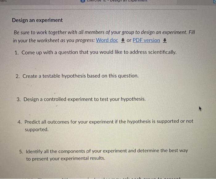 Designing An Experiment Worksheet - worksheet Displaying top 8 worksheets found for designing an experiment. Working with your group create a hypothesis design your experimental set up and identify the different groups in the experiment. Tailor the pdf to your needs by typing in the highlighted fields before printing.
