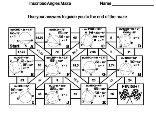 Geometry inscribed angles worksheet answers