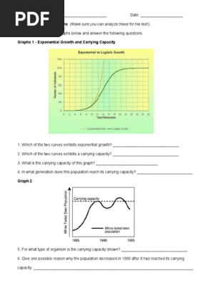 DOC Population Ecology Graph Worksheet - Grosse Pointe Public ... Population Ecology Graphs . Directions: Look at the graphs below and answer the following questions. Graphs 1 - Exponential Growth and Carrying Capacity. 1. Which of the two curves exhibits exponential growth? ___yellow_____ 2. Which of the two curves exhibits a carrying capacity? _____green_____ 3.