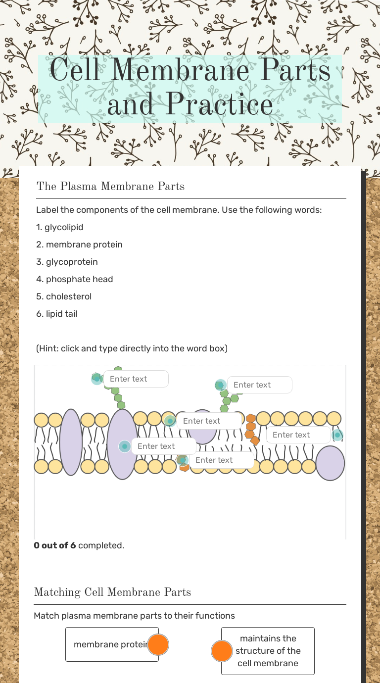 PDF Cells & Organelles Name Directions: Match the function ... Cell Membrane Controls what comes into and out of a cell; found in plant and animal cells Cell Wall Ridged outer layer of a plant cell Cytoplasm Gel-like fluid where the organelles are found Mitochondria Produces the energy a cell needs to carry out its functions Lysosomes Uses chemicals to break down food and worn out cell parts PARTS OF THE CELL - matching Worksheet Flashcards | Quizlet PARTS OF THE CELL - matching Worksheet. PLAY. Match. Gravity. Nuclear Membrane. Click card to see definition 👆. Tap card to see definition 👆. holds nucleus together. Click again to see term 👆.