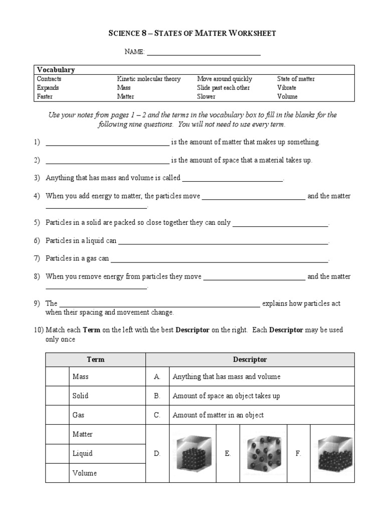 Science 8 States Of Matter Worksheet Using the worksheet can help children feel more connected to the subject matter in a fun and interactive way. Of course, this doesn't mean that the parents can just leave the kids in the Science class all day, or day and night. Parents can encourage their children to discuss the different states...