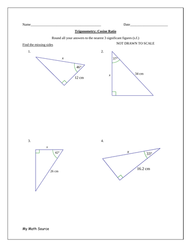 Trigonometric Ratios Worksheets | Printable Online PDFs By solving Trigonometric ratios worksheets, you'll understand that the trigonometric ratios are given by the trigonometric functions of the known angle A, where a, b, and c are lengths of the sides of the figure produced. Real-life examples of trigonometric ratio include areas such as astronomy, geodesy, surveying, and navigation. PDF Trigonometry Worksheet T1 - Labelling Triangles Trigonometry Worksheet T3 - Calculating Sides Work out the sides labelled. Questions 1 and 2 require Sine, questions 3 and 4 require Cosine, question 5 and 6 require Tangent. The rest …. you will need to work out which to use and how! (Worksheet T1 may help you!!) 1. 7. 2. 8. 3. 9. 4. 10. 5. 11. 6. 12. PDF Pythagorean Theorem & Trigonometric Ratios Round answers to the nearest tenth, if necessary. 6 . 7 ... SWBAT: Use Trigonometric Ratios to find missing lengths of a right triangle Trigonometry: Solving for a Missing Side - Day 3 Warm Up Determine the trigonometric ratios for the following triangle: (a) Sin A = Trigonometric Ratios Word Problems Worksheet With Answers ... Chapter and lesson with one Practice worksheet for every lesson in Glencoe Algebra 1. Trigonometric ratios word problems worksheet with answers pdf. Software for math teachers that creates exactly the worksheets you need in a matter of minutes. Simplify radical calculators Interactive Math Program solutions. Find the value of the variable.