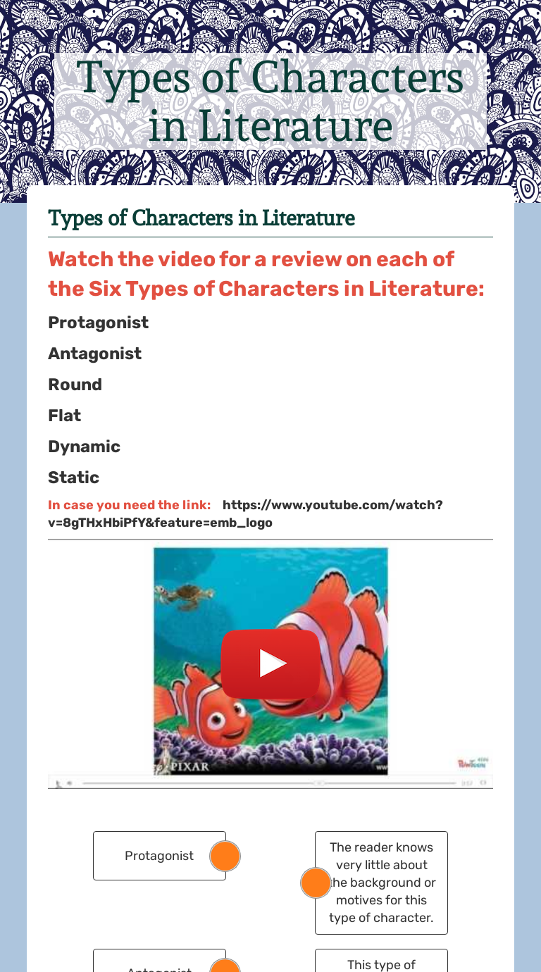 Character types worksheet 1
