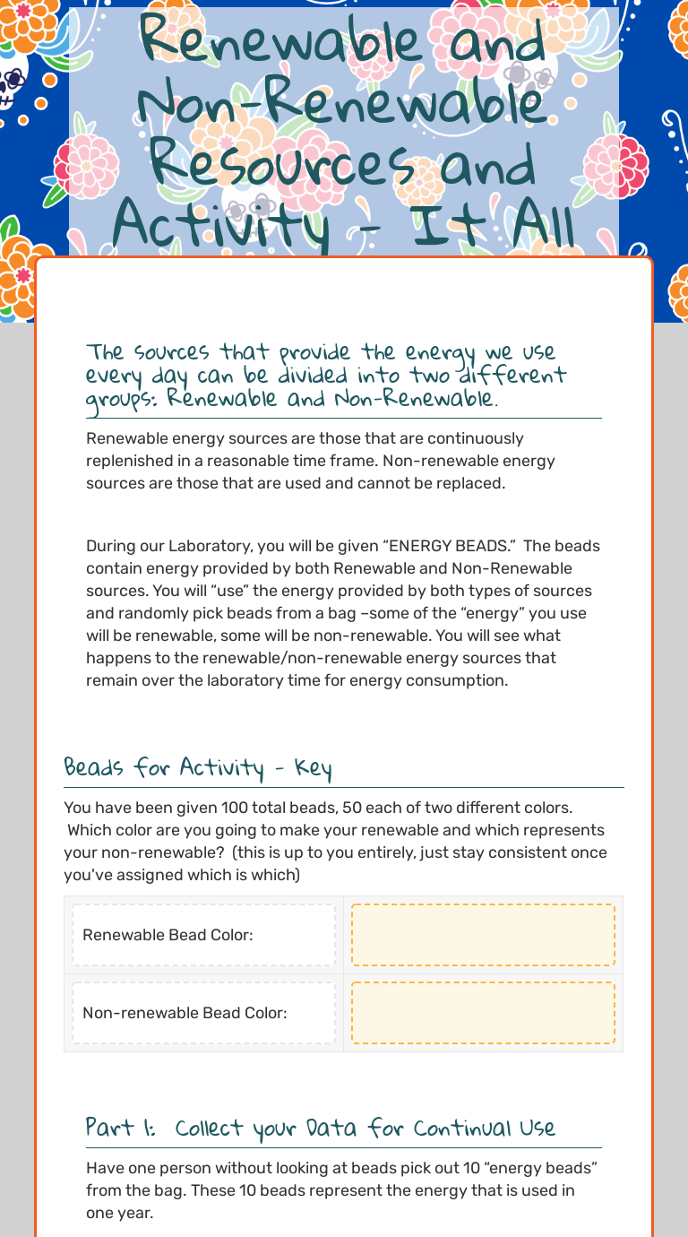 DOC Student Worksheet on Energy Resources - WordPress.com Student Worksheet on Energy Resources . 1a) What does it mean when an energy resource is said to be "renewable"? Possible responses: Renewable resources regenerate or can be replaced in a relatively short time period (such as the length of a human life). 1b) What does it mean when an energy resource is said to be "non-renewable."