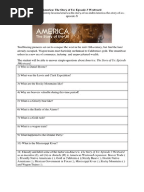 America The Story Of Us Westward Worksheets & Teaching ... Activities, Movie Guides, Worksheets America the Story of Us: Westward by Stephanie's History Store 20 $1.50 PDF If you plan to show the episode "Westward" of the series America the Story of Us, here are 25 questions and answers you can use to keep the students paying attention. This fits in a 45 minute class period.