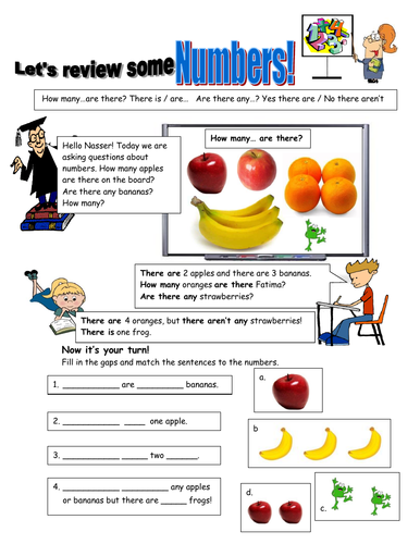 There Is There Are ESL Games, Activities, Worksheets ... However, there are exceptions for some nouns like people or feet. Then, do some practice exercises, worksheets, games and activities to reinforce this concept. How do you explain there is and there are to kids? The best way to explain there is and there to kids is through using pictures and simple sentences. There is or there are in sentences - K5 Learning Worksheets: use 'there is' or 'there are' The tricky thing about 'there is' and 'there are' is the noun comes after the verb, unlike the majority of sentences where the noun comes before the verb. E.g. There is a bear in the forest. vs. The bear is in the forest.