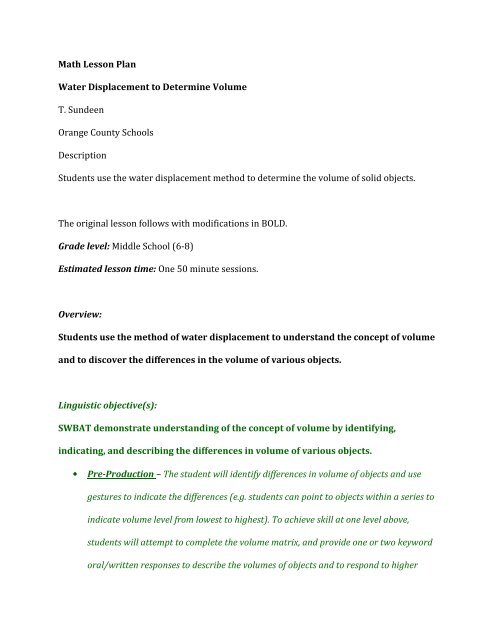 PDF Chapter 3, Lesson 2: Finding Volume—The Water Displacement ... 2016 American Chemical Society Middle School Chemistry - 169 Chapter 3, Lesson 2: Finding Volume—The Water Displacement Method. Key Concepts • A submerged object displaces a volume of liquid equal to the volume of the object. Answer Key Volume By Water Displacement Worksheets - Kiddy ... 1. Water displacement worksheet 2. Volume by water displacement worksheet answer key 3. Volume by Water Displacement 4. Volume By Water Displacement Worksheet 5. Water displacement worksheet answer key 6. Volume displacement worksheet 7. Volume By Water Displacement Worksheet 8. Week 68th Grade Answer Key Awesome Volume By Water Displacement Worksheet - The ... Some of the worksheets for this concept are Volume by water displacement Chapter 3 lesson 2 finding volumethe water displacement Volume and displacement year 6 Volume capacity and mass Math volume answers Figure 1 b figure 1 a b cp chemistry unit 1 work 3 Volume lab name Volume capacity and. Volume of graduate with object. Volume By Water Displacement Worksheet Answer Key Some of the worksheets for this concept are Volume by water displacement Chapter 3 lesson 2 finding volumethe water displacement Volume and displacement year 6 Volume capacity and mass Math volume answers Figure 1 b figure 1 a b cp chemistry unit 1 work 3 Volume lab name Volume. Answer key volume by water displacement.