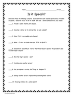 PDF FIRST AMENDMENT FREEDOM OF SPEECH - National Constitution Center Interactive Constitution: The First Amendment Project EE EEC 3 Materials: • Warm Up Worksheet of Speech Hypotheticals (included) • Access to the Interactive Constitution (online) or printed copies of the following essays: 1. Common Interpretation "Freedom of Speech and of Press" by Geoffrey R. Stone and Eugene Volokh (VŌ-luck) Lesson Plan: Free Speech or Hate Speech? | The Fire Next Time | POV | PBS 1 handout and 1 worksheet for each student (downloadable in the PDF) Copy of The Fire Next Time and the equipment on which to play it ESTIMATED TIME NEEDED: The minimum time needed is three class periods, one for preparation, one for viewing the film, and one for follow-up. Freedom of speech - ESL worksheet by sapic Live Worksheets Worksheets that listen. Worksheets that speak. Worksheets that motivate students. Worksheets that save paper, ink and time. Advertise here Teaching resources > Other worksheets > Freedom of speech Freedom of Speech and of the Press Lesson Plans - Free Speech Week National Constitution Center - Provided by the Bill of Rights Institute, for grades 6-12, Respecting Freedom of Speech National First Ladies Library - For middle school classrooms, "Should Students Have Free Speech?" adapted by Averil McClelland, Kent State University. Visit