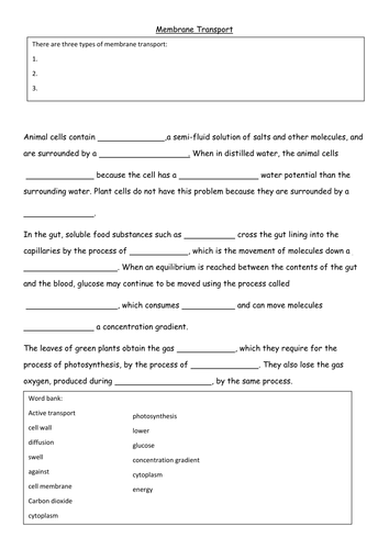 Quiz & Worksheet - Active Transport in Cells | Study.com This worksheet and quiz will allow you to test the following skills: Reading comprehension - ensure that you draw the most important information about what is involved in active transport in cells ...