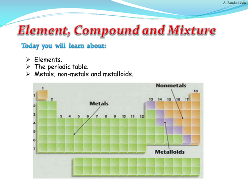 The Science Spot Meet the Elements (Digital) - Click HERE for a PPT with a link to the digital worksheet for students and an answer key you can use in class. Share the Meet the Elements video about elements and compounds with your students. Paper Version : Meet the Elements (pdf) Thanks to Christina Causland for sharing the worksheet. Classroom Lessons
