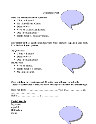 Spanish for Beginners: De donde eres? | Teaching Resources Personal details Worksheet for Beginners Spanish based on Listos Textbook.