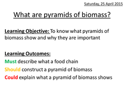 Pyramids of biomass | Teaching Resources Worksheet for the lesson is the last slide Lesson for pyramids of biomass: - starter: cryptogram - card sort for key words - literacy correction activity - directions for constructing a pyramid of biomass - labelled diagram of where a horse uses and takes in biomass - plenary: cloze activity Linked very closely to aqa b1 5.1/5.2.