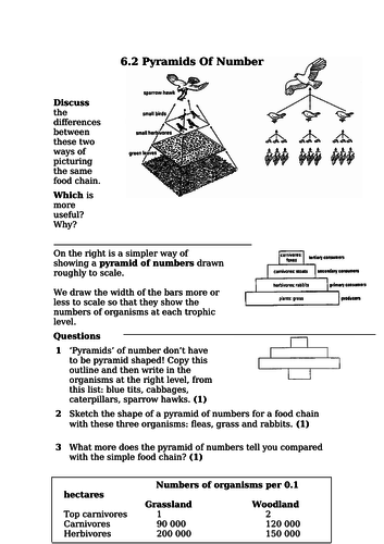 Pyramids of Number and Biomass Worksheet KS4 | Teaching ... doc, 178.5 KB An extra worksheet for students to practice drawing pyramids of number and biomass, they will need graph/squared paper to complete. The challenge is that they need to construct an appropriate scale for each.
