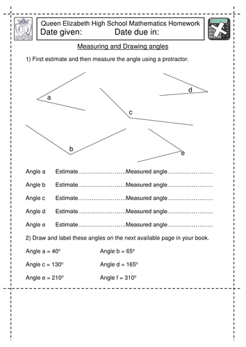 Drawing angles worksheet ID: 1419226 Language: English School subject: Math Grade/level: grade 7 Age: 11-13 Main content: Drawing angles Other contents: Add to my workbooks (14) Download file pdf Embed in my website or blog Add to Google Classroom