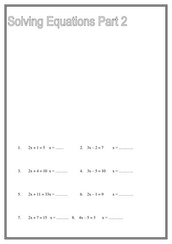 Two-step Equations (Worksheet Bundle) | Teaching Resources All of these sheets contain equations that can be solved in just two steps and each worksheet gets slightly harder and allow students to progress through to equations with bracketed expressions and eventually with squares and roots. -- The sheets are aimed at upper primary and secondary school students.