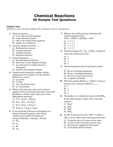 Chemical Reactions entire unit HOMEWORK with ANSWERS, editable, Multiple Choice EXAM, Chemistry ...