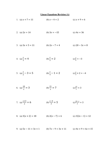 Worksheets for linear equations - Homeschool Math Worksheets for linear equations Find here an unlimited supply of printable worksheets for solving linear equations, available as both PDF and html files. You can customize the worksheets to include one-step, two-step, or multi-step equations, variable on both sides, parenthesis, and more.