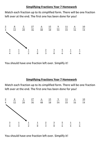 Simplify fractions worksheet with answers