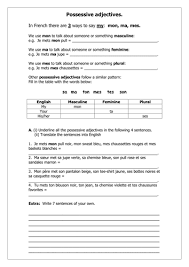 43 french possessive adjectives worksheet