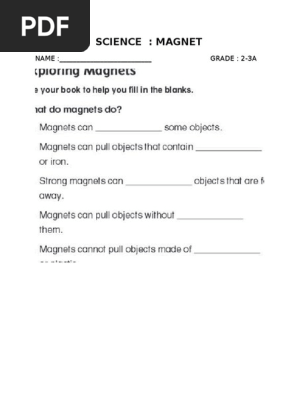 magnetism worksheet physics Magnetism. Physics Worksheets And Study Guides High School. newpathworksheets.com magnetism physics Magnetism - Science Worksheet On Magnetism For 5th Grade | Science magnetism worksheets science worksheet attract repel grade quiz properties kindergarten different magnets magnet 3rd 5th printable 4th 2nd pdf cool PDF p11cdn4static.sharpschool.com p11cdn4static.sharpschool.com PDF Learning About Magnets! This bar magnet is a permanent magnet. Permanent magnets can be found in the Earth as rocks and metals. Magnets have a North pole and a South pole. When you bring opposite poles together they attract each other. Opposites attract. When you bring like poles together the magnets repel each other. Like repels. Permanent Magnets KS3 Science Revision Worksheets Special Edition - Weebly KS3 Science Revision Worksheets Special Edition P. Hill, Beaver Educational Resources 2000. Registered to Fitzalan High School. CF11 8XB.