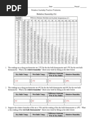 Relative humidity worksheet answers. pysy.allini.it › drive-right-chapter-11-answersDrive Right Chapter 11 AnswersWhen traffic is heavy ... A Sling Psychrometer and Relative Hu…. Answers To Pearson Drive Right Eleventh Edition Drive Right Chapter 6 -- First Half. science fiction, fantasy, thrillers, romance) and types (e. ) argued women should be allowed the right to vote during the 1848 Women’s Rights Convention held at Seneca Falls, New York. › standards › standard-faqsTemperature and Humidity Requirements - Joint Commission May 20, 2022 · Depending on the type of facility surveyed, these organizations must meet Conditions of Participation (CoP) or Conditions for Coverage (CfC). The worksheet provides the following guidance for surveyors for reusable items sterilized on site: (HAP) After sterilization, medical devices and instruments are stored so that sterility is not compromised. Wiz Kids | Because weather is awesome Visit our Facebook page. See our posts on national weather news, weather articles, natural disaster stories, and more of the exciting world of weather! › temperature › assetsRisk Assessment Work Sheet humidity inside the PPE. If an employee is wearing this sort of PPE (e.g. asbestos, chemical protection suits etc) the humidity within the microclimate of the garment may be high. Humidity is very difficult to estimate. Profuse sweating may be an indication of high humidity, but it may also be an indication of a high physical activity.
