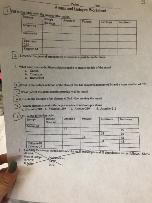 Atoms and isotopes worksheet answers