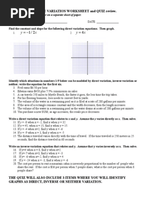 Direct and inverse variation worksheet answer key