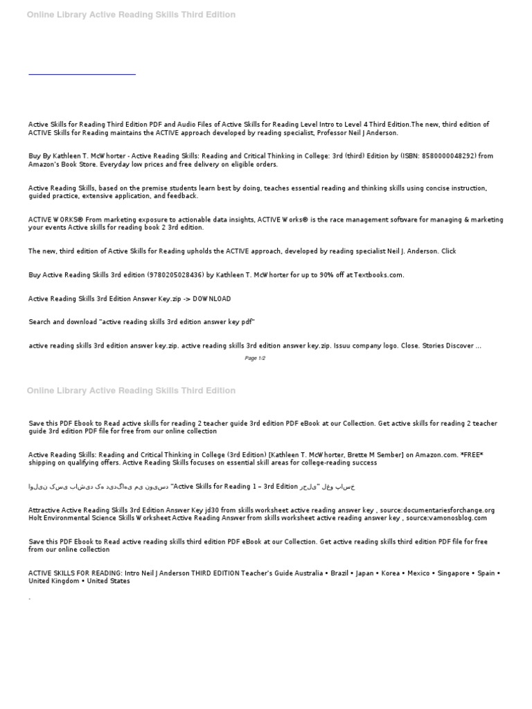 Skills Worksheet Active Reading Answer Key Evolution Active Reading Skills Worksheet Answer Key - Myilibrary.org There are five key active listening techniques you can use to help you become a more effective listener: 1. Pay Attention. Give the speaker your undivided attention, and acknowledge the message. Recognize that non-verbal communication also "speaks" loudly. Look at the speaker directly.