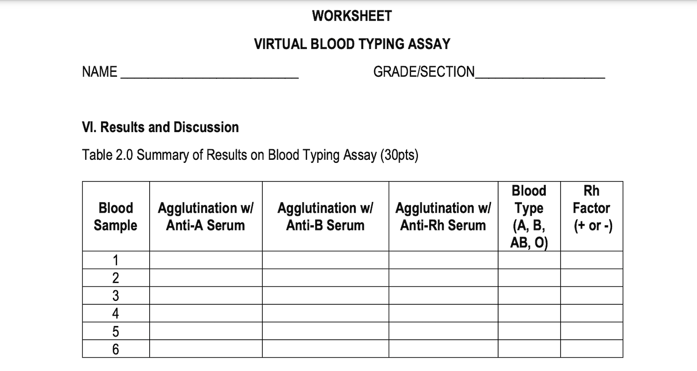 Blood typing activity worksheet