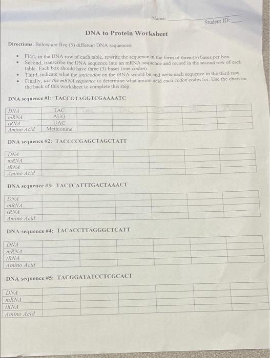 Dna to protein worksheet