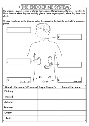 Endocrine System Worksheets Teaching Resources | TpT - TeachersPayTeachers The worksheet also allows pupils to learn about the hormones produced by the main glands, their target organs and the effect of the hormone.The second worksheet is a crossword to consolidate students' knowledge of the endocrine system and strengthen their use of key words associated with this topic and aid correct scientific spelling too.Both ...