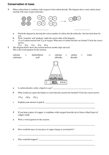 Law of conservation of mass worksheet answers