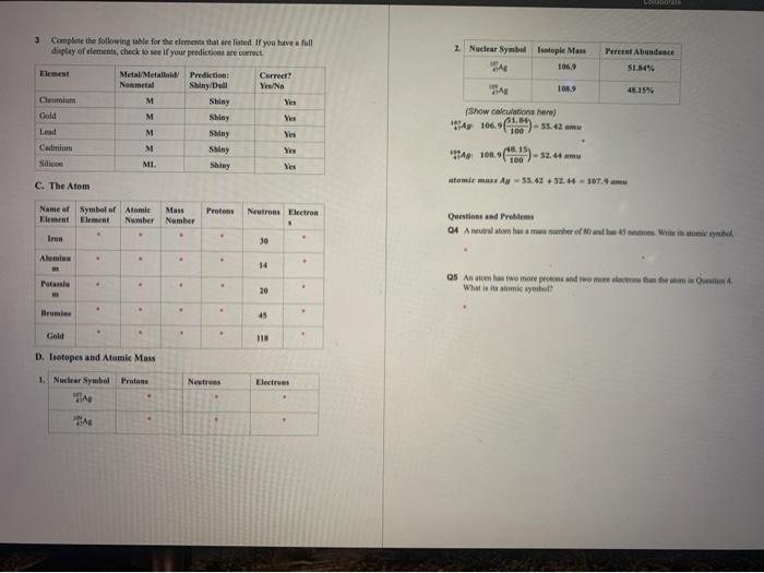 43 atoms and elements worksheet answers