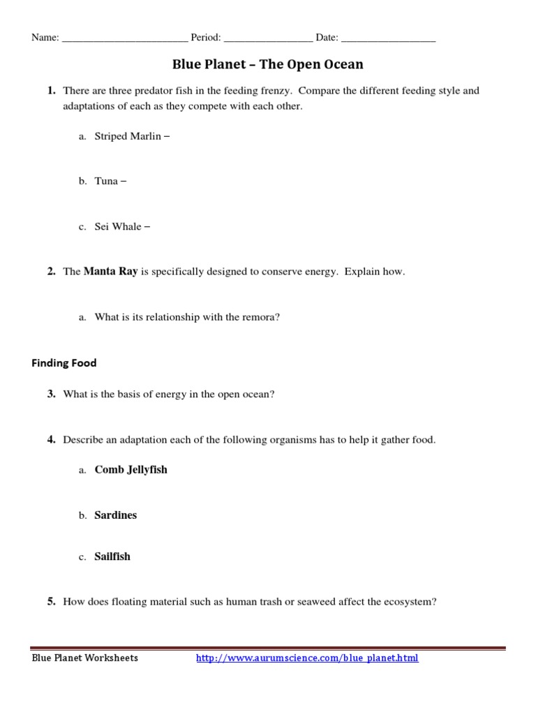 Blue planet open ocean worksheet answers