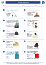 Energy Resourses - 7th Grade Worksheets PDF | Grade 7 Science - eTutorWorld Energy resources are resources that naturally occur in the planet that help humans to get energy in the form of mostly electricity while natural conditions are favorable. These resources are coal, oil, wood, or gas. Renewable resources are wind, solar, hydroelectric, and also wave power. Download Worksheet - Energy Resources
