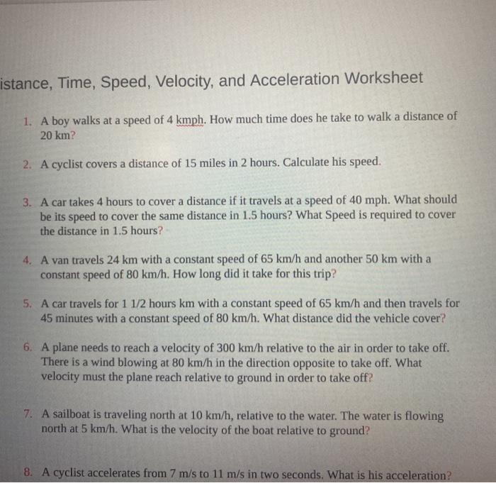 Speed velocity and acceleration worksheet