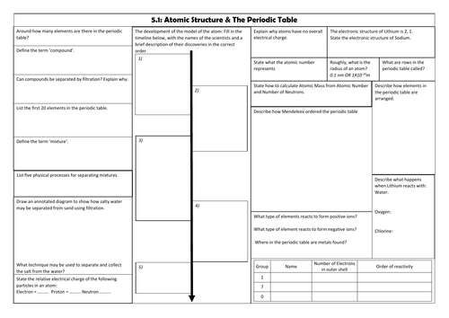 Atomic Structure and Periodic Table - GCSE Chemistry Paper 1 Worksheet ... This bundle contains 15 worksheets, including an editable periodic table that can be used in class or as homework to enable your students to practice what they have learnt in the classroom for the atomic structure and periodic table. The diagrams are simple to aid students to visually see what may come up in their upcoming GCSE exams.
