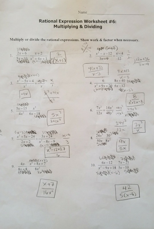 Bookmark File PDF Multiplying And Dividing Rational Expressions ... Rational Expressions Worksheet - George Mason University Rational Expressions Worksheet Reducing Rational Expressions 1. Reduce 2 9 3 x x 2. Reduce 2 2 56 1 yy y 3. Reduce 2 2 33 33 xxaxa xax x a 4. Reduce ab ba 5. Reduce 2 25 5 x x 6. Reduce 32 32 22 24 28 xx x xx x Multiplying and Dividing Expressions 1. Multiply 33 82 89 27 12 xy yx 2. Multiply 22 32 469 Rational Expressions Calculator The procedure to use the rational expression calculator is as follows Step 1 Enter the numerator and denominator expression in the respective input field So for example x minus 3 over x plus 2 1 n4 3 2 n6 2 27 p6 5 3 243 p10 3 25 b6 −1 Search Write A Rational Function Calculator A four-function calculator can help you perform basic arithmetic ... Get Free Multiplying And Dividing Rational Expressions Worksheet 8 2 ... Rational Expressions Worksheet - George Mason University Rational Expressions Worksheet Reducing Rational Expressions 1. Reduce 2 9 3 x x 2. Reduce 2 2 56 1 yy y 3. Reduce 2 2 33 33 xxaxa xax x a 4. Reduce ab ba 5. Reduce 2 25 5 x x 6. Reduce 32 32 22 24 28 xx x xx x Multiplying and Dividing Expressions 1. Multiply 33 82 89 27 12 xy yx 2. Multiply 22 32 469 xx xxx Rational Expressions Date Period - Kuta Software Number Theory - BrainMass Translating Expressions and Equations . See the attached file. 1. The sum of twice a number and three 2. Twice the sum of a number and three 3. The difference of 37 and 4 times a number 4.The total of five times a number and ten is three 5. Twenty-one s the quotient of three times a number and seven 6. There were roses in the vase. Joan cut some mo