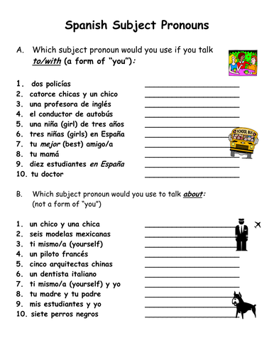 Spanish subject pronouns worksheet