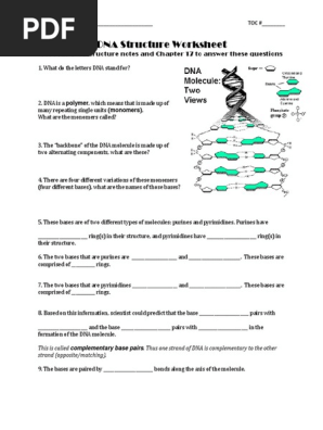 Dna structure worksheet answer key