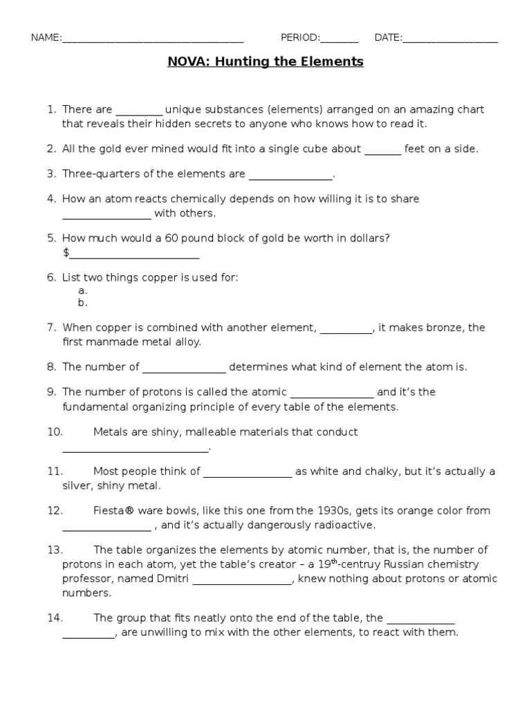nova hunting the elements worksheet Key Nova Hunting The Elements Worksheet Answers - kidsworksheetfun. 14 Images about Key Nova Hunting The Elements Worksheet Answers - kidsworksheetfun : Nova Hunting The Elements Worksheet Answers Pdf — db-excel.com, Pbs Nova Hunting The Elements Worksheet Answers - lost-dre-ams.blogspot.com and also Nova Hunting The Elements Video Worksheet Answer Key - designcentersas.